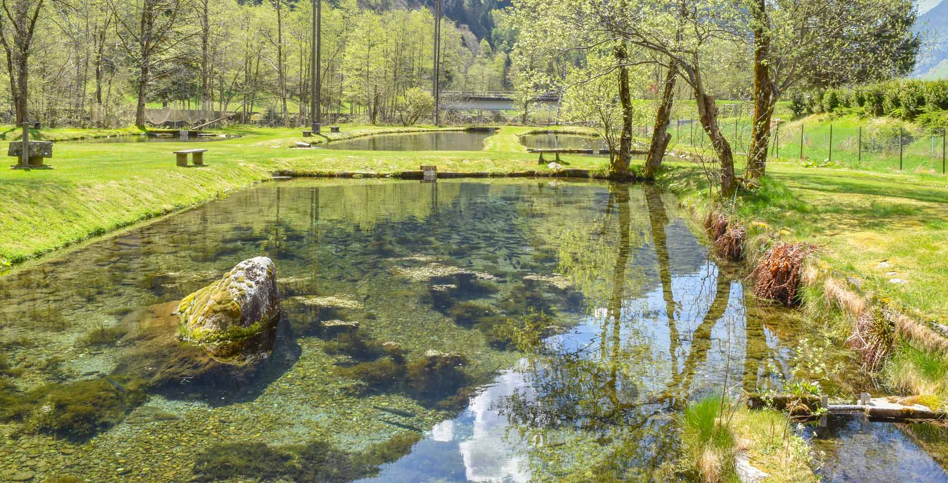 Von der Bushaltestelle geht man über die Brücke und folgt dem Wegweiser in Richtung Cauco. Dies ist die Route der Via Calanca Nr. 737. Achtung (!) diese ist nur in entgegengesetzter Richtung, also talaufwärts signalisiert! Ein kurzes Stück der Strasse entlang und der Weiler Tarco ist erreicht. Nach der Bushaltestelle biegt man nach links auf den Feldweg ab. Dieser führt direkt zu den Fischweihern mit Forellen von Augio. Ein wunderschöner Ort, um eine Rast einzulegen. Alternativ kann man die wenigen Minuten auf der Strasse weitergehen, um direkt zum Eingang des hübschen Dorfes Augio zu gelangen, was sich lohnt. Denn Augio gehört zu den fünf schützenswerten Ortsbildern im Calancatal (ISOS – Bundesinventar der schützenswerten Ortsbilder der Schweiz von nationaler Bedeutung).