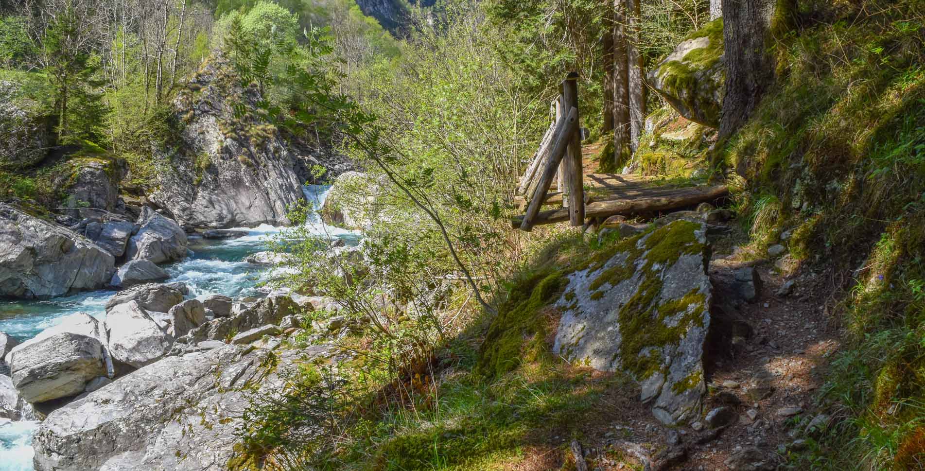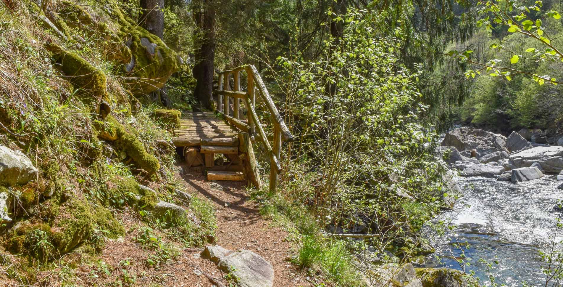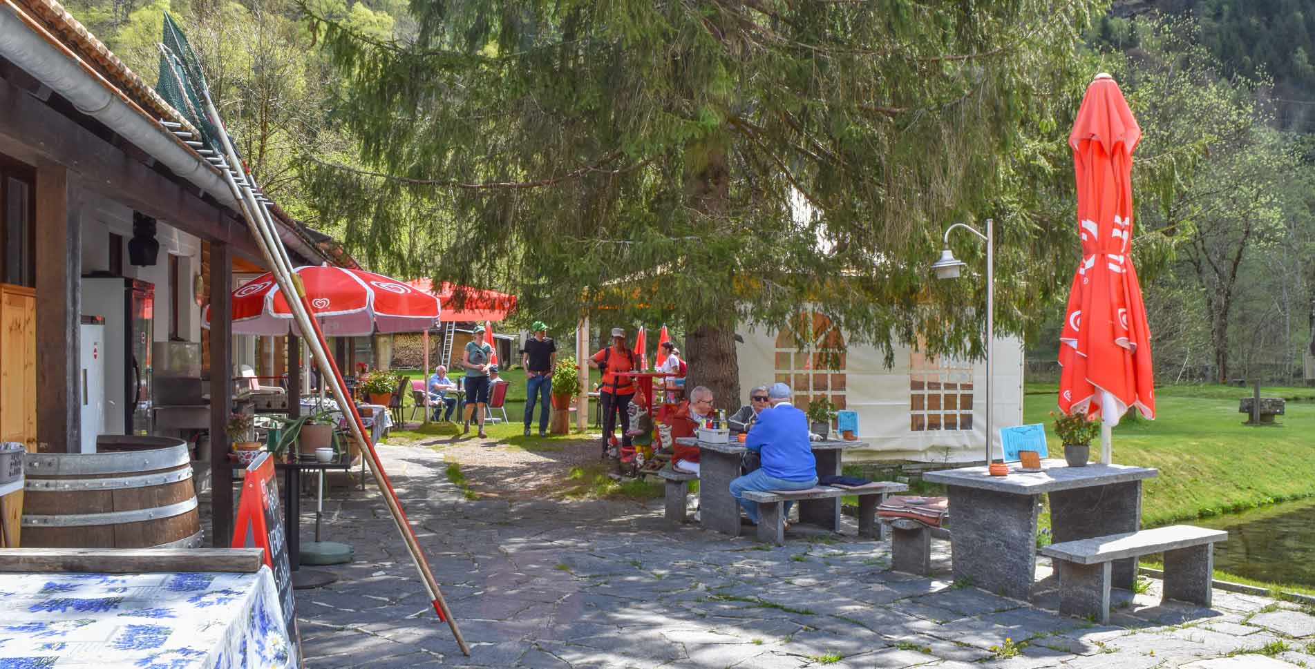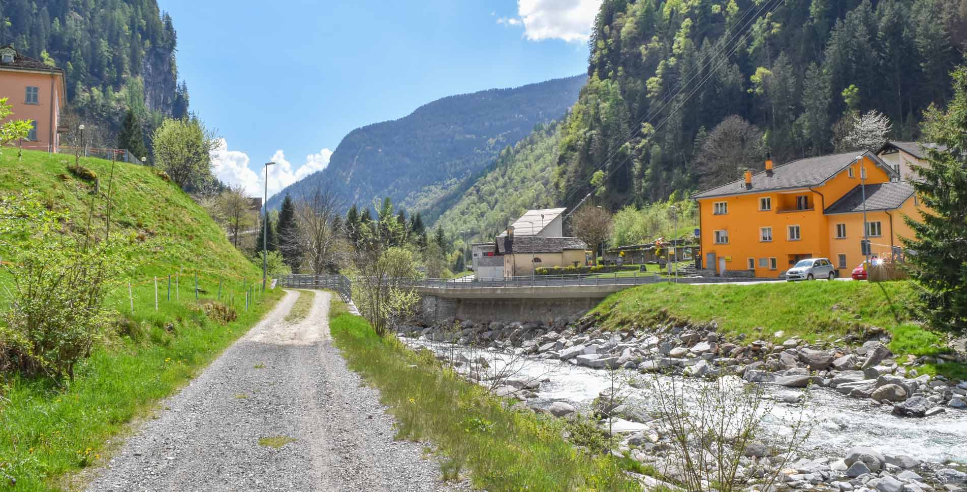 Dann ist der Weiler Selma erreicht, wo sich auch die Seilbahn hinauf zum Weiler Landarenca befindet. Hier lohnt sich ein Abstecher über die Brücke, um im RistoBar B&B al Pont (+41 76 376 80 17) mit kleiner Sonnenterrasse einzukehren. Auch übernachten kann man dort.