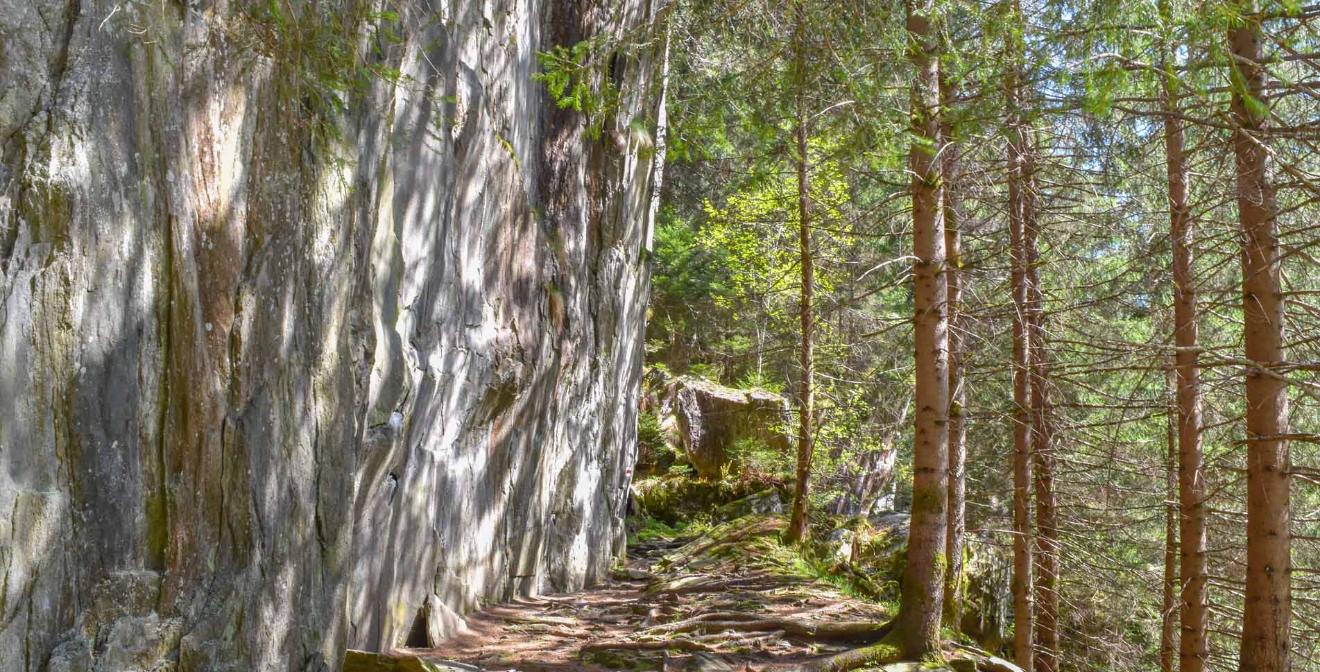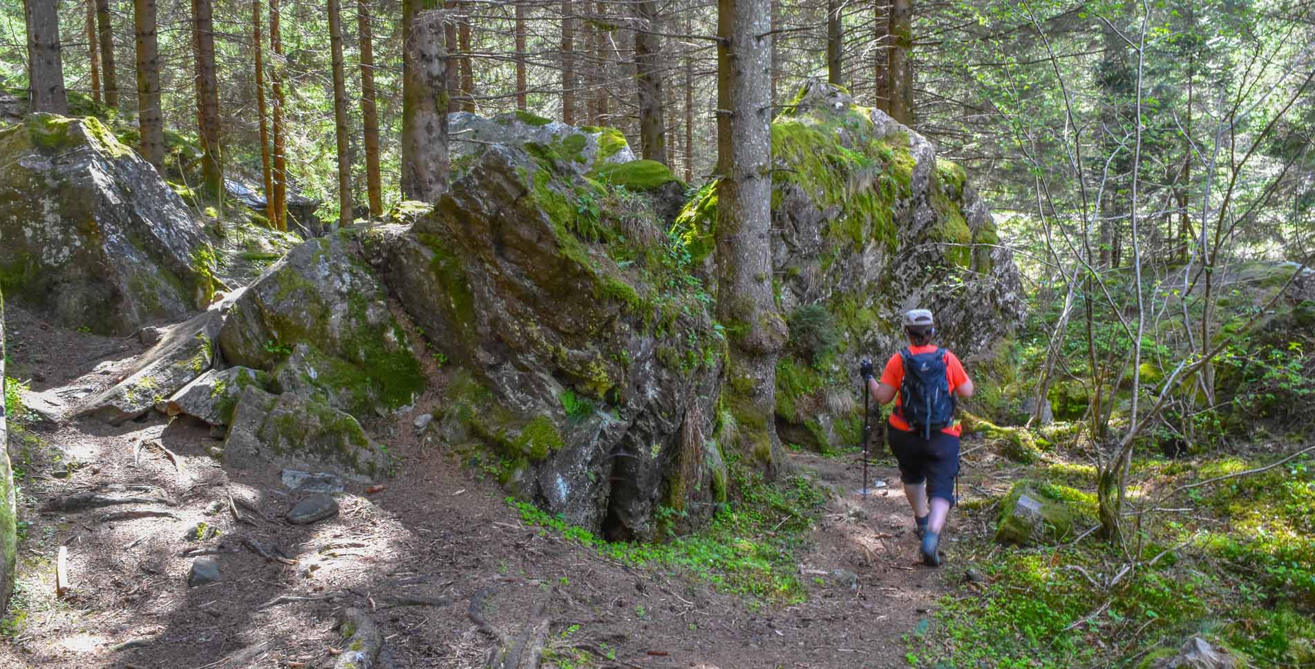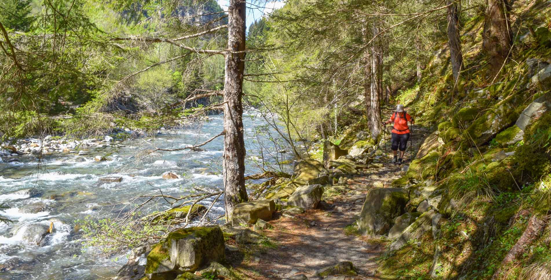 Bei der Brücke von Selma folgt man dem Wegweiser in Richtung Arvigo. Die Route führt ein Stück die Strasse hinauf, dann biegt man nach rechts ab, weiter in Richtung Arvigo. Nun wird der T1-Wanderweg allmählich zu einem T2-Bergweg; schmal und steinig, sprudelnde Bergbäche überquerend. Nach einer kleinen Lichtung mit Feuerstelle geht es durch einen Märchenwald mit riesigen, eindrücklichen und teilweise vermoosten Felsblöcken. Unter einem die Calancasa mit türkisblauem, kristallklarem Wasser, kleinen Pools und tosenden Wasserfällen. Mit jedem Schritt wird der Fluss noch wilder, noch idyllischer. Im Auf und Ab, über Brücken, einige teilweise hohe Treppenstufen und schmale Passagen nahe am Abhang – der Weg ist aber genug breit – wandert man nach Arvigo.