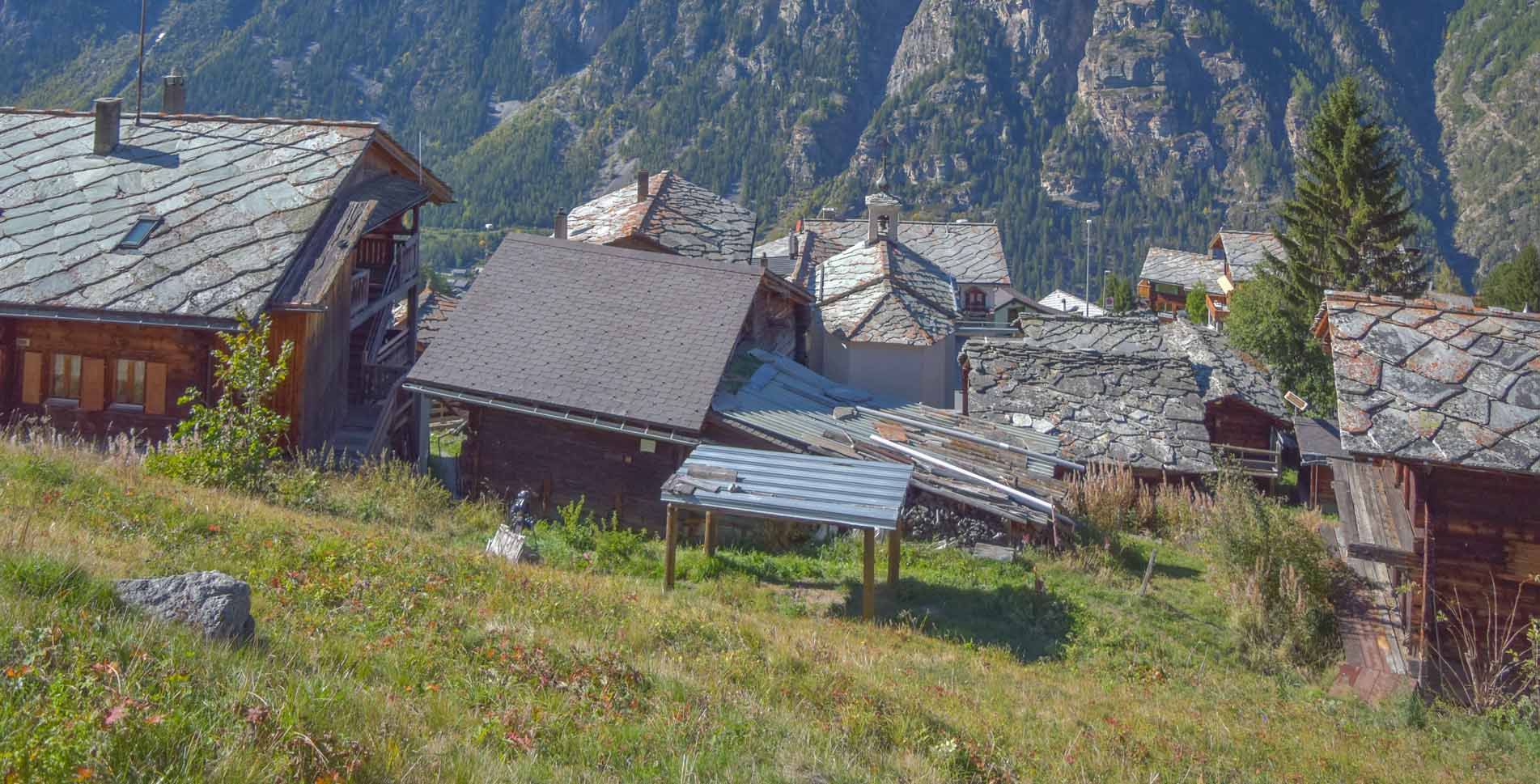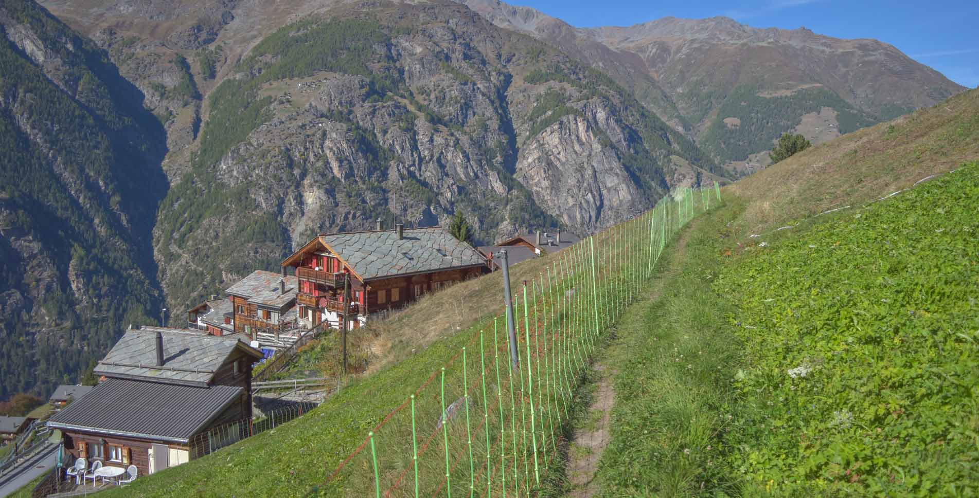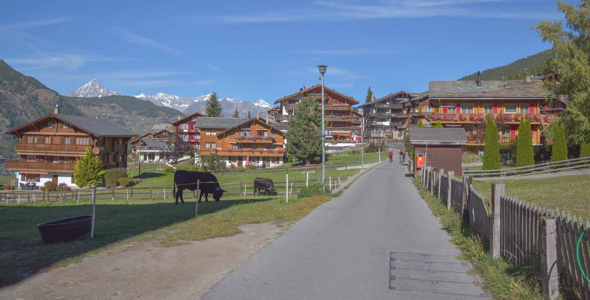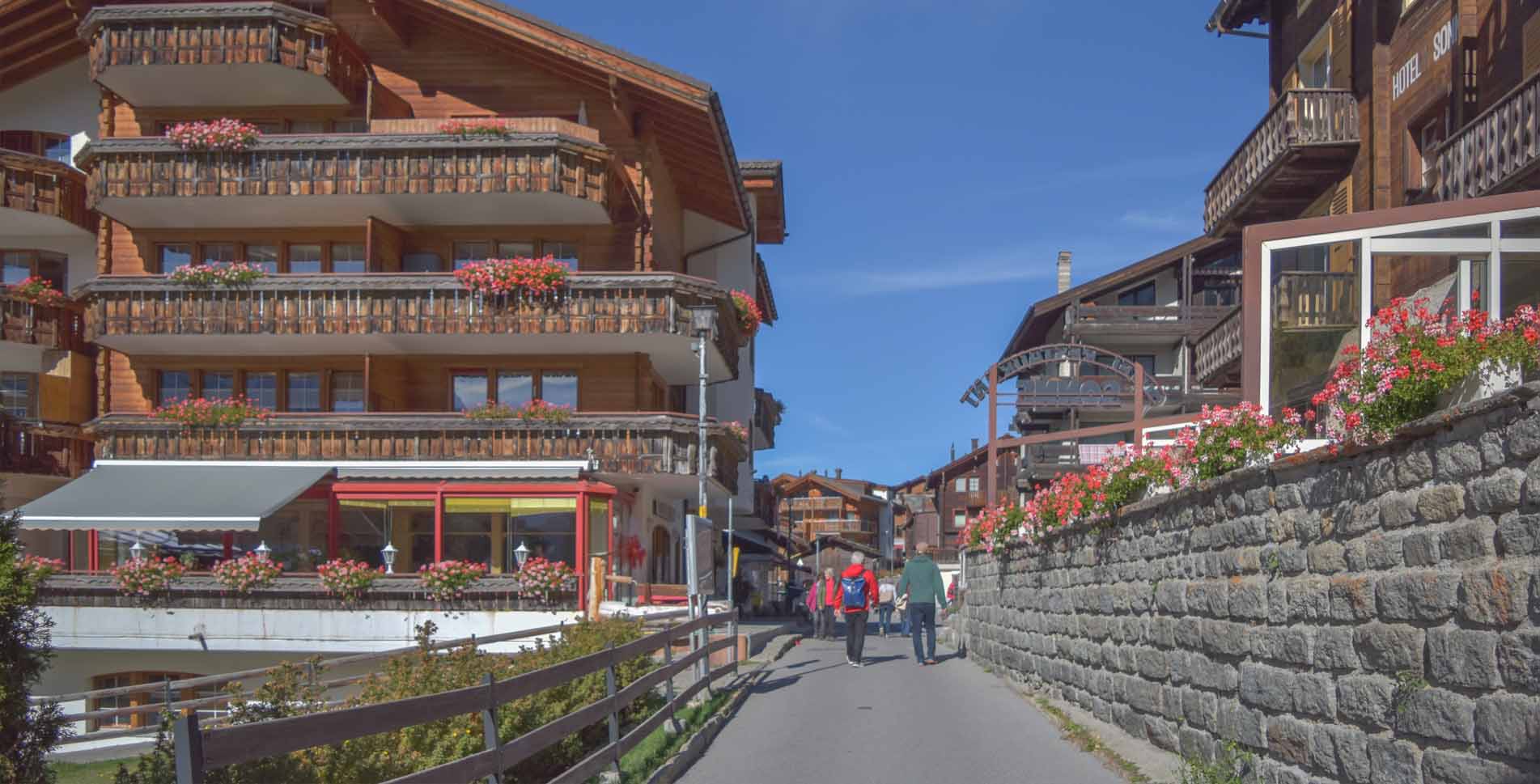 - Autofreie Sonnenterrasse Grächen mit historischen Gebäuden