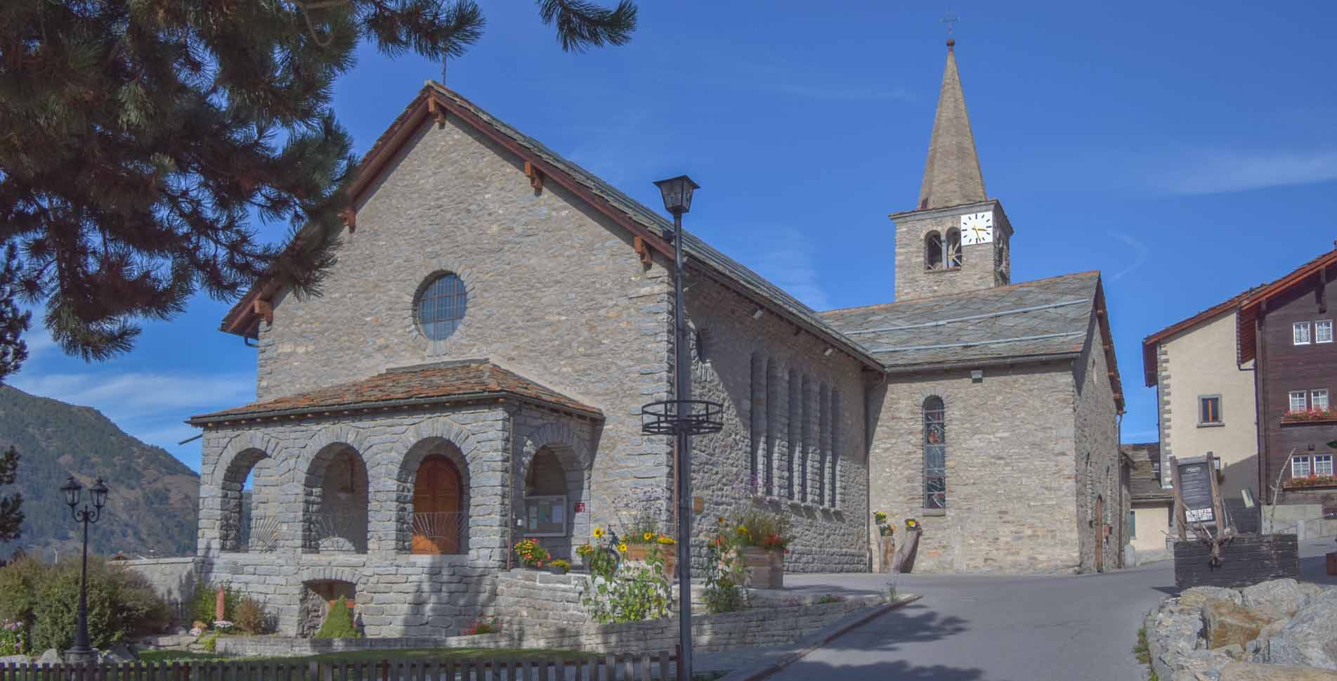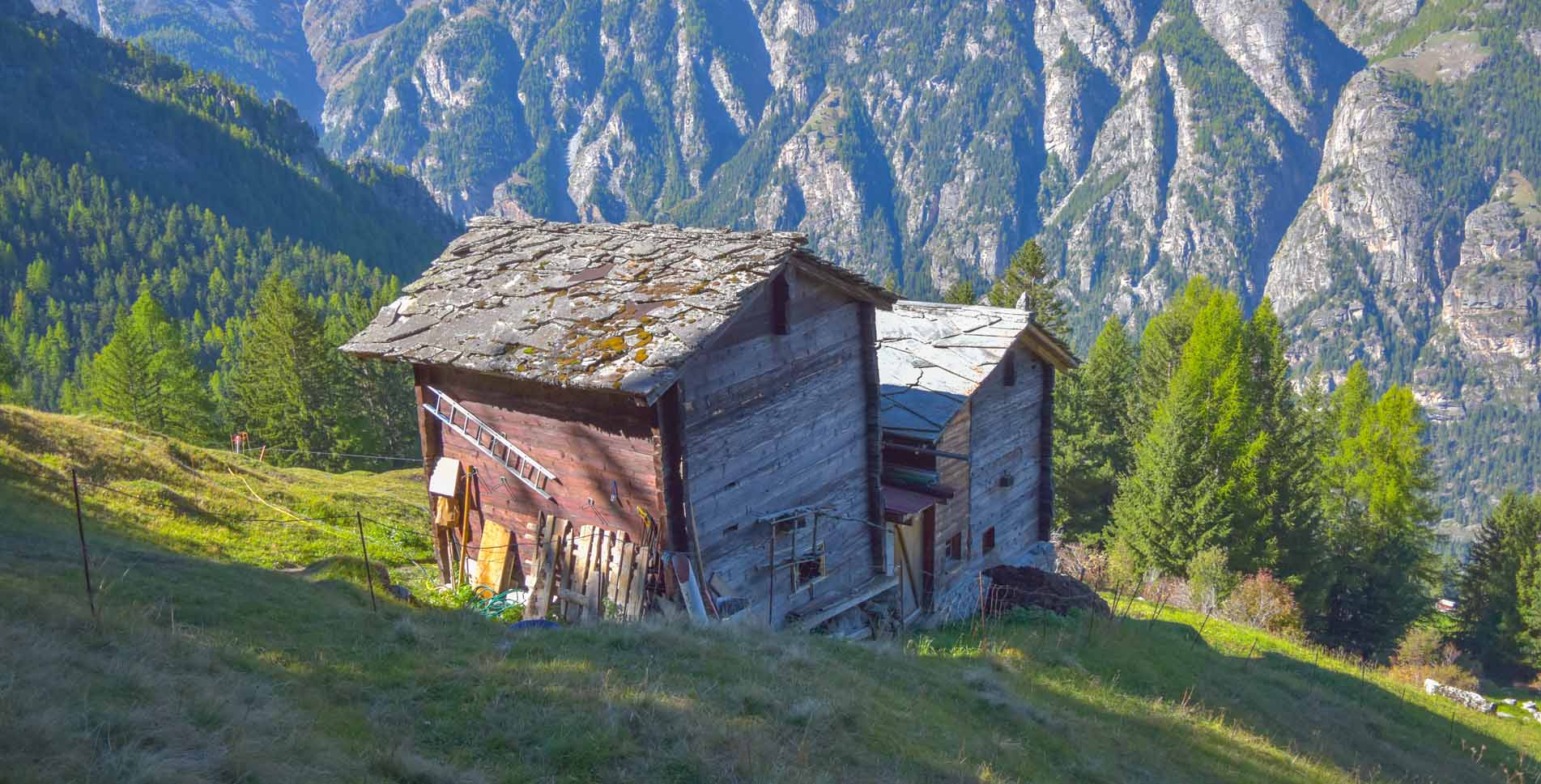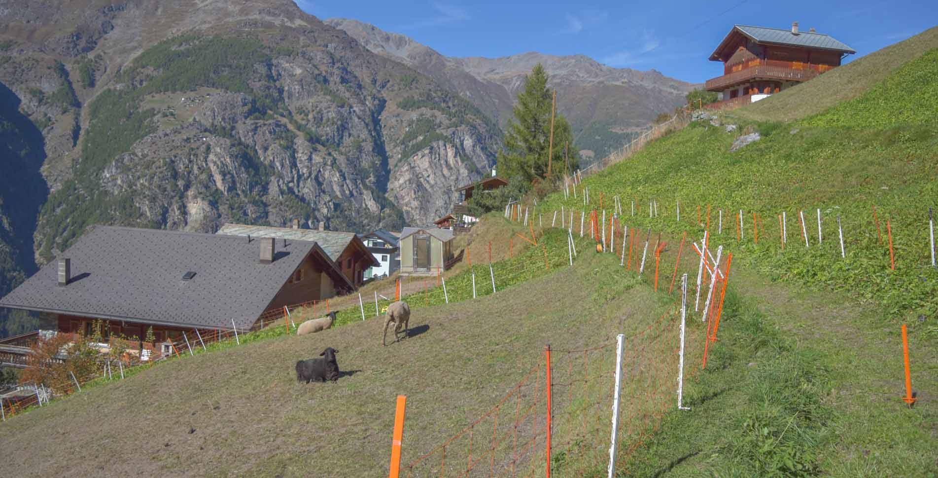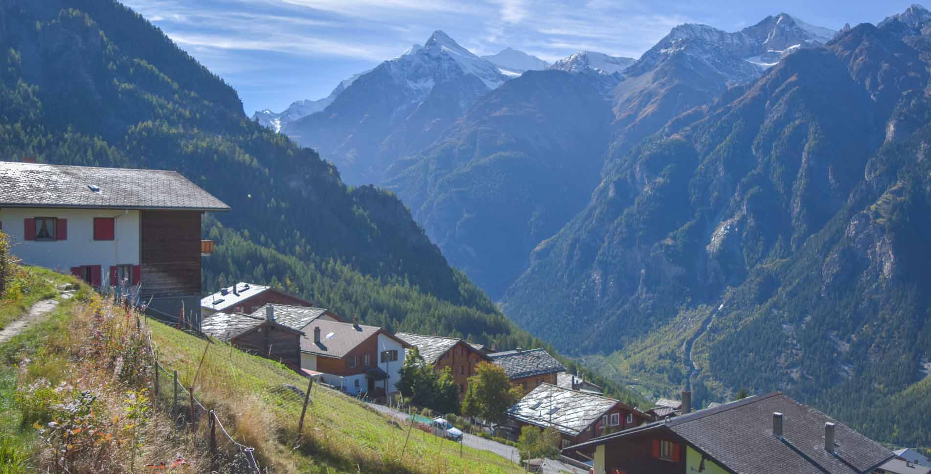 - Autofreie Sonnenterrasse Grächen mit historischen Gebäuden