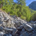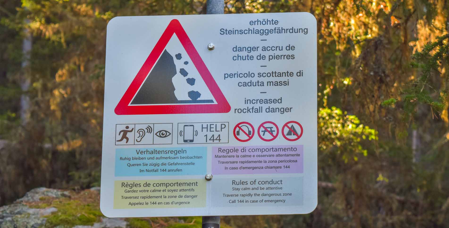 - Abschnittsweise durch Gebiete mit erhöhter Steinschlaggefahr