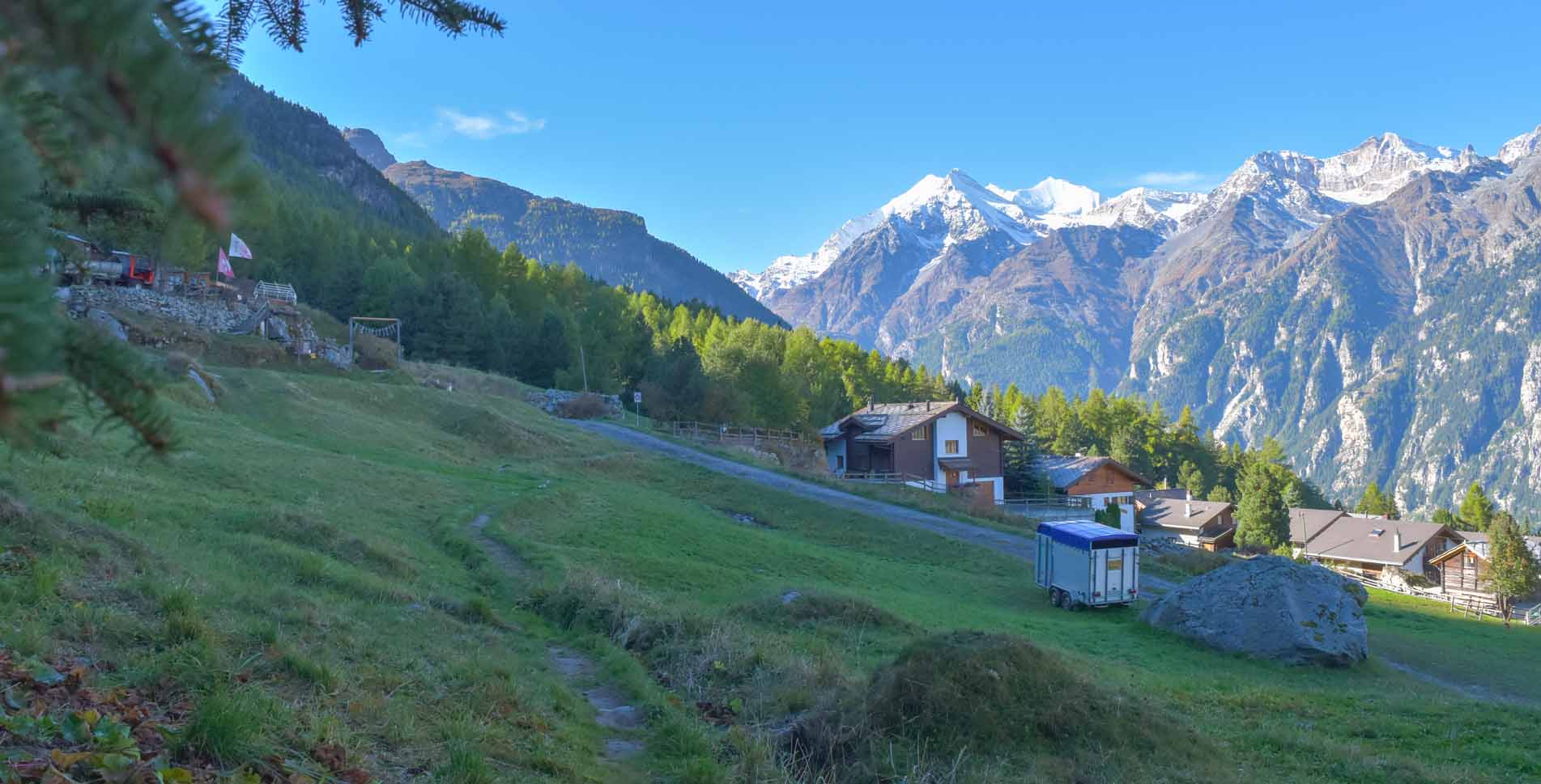 Ausgangspunkt der Wanderung ist Grächen, hoch über dem Mattertal. Das schöne, autofreie Walliser Bergdorf liegt auf rund 1620 Metern auf einer langgezogenen Sonnenterrasse. Erreichbar ist Grächen mit dem Bus von St. Niklaus VS. Nach Niklaus VS gelangt man mit der Matterhorn-Gotthard-Bahn von Visp in Richtung Zermatt.