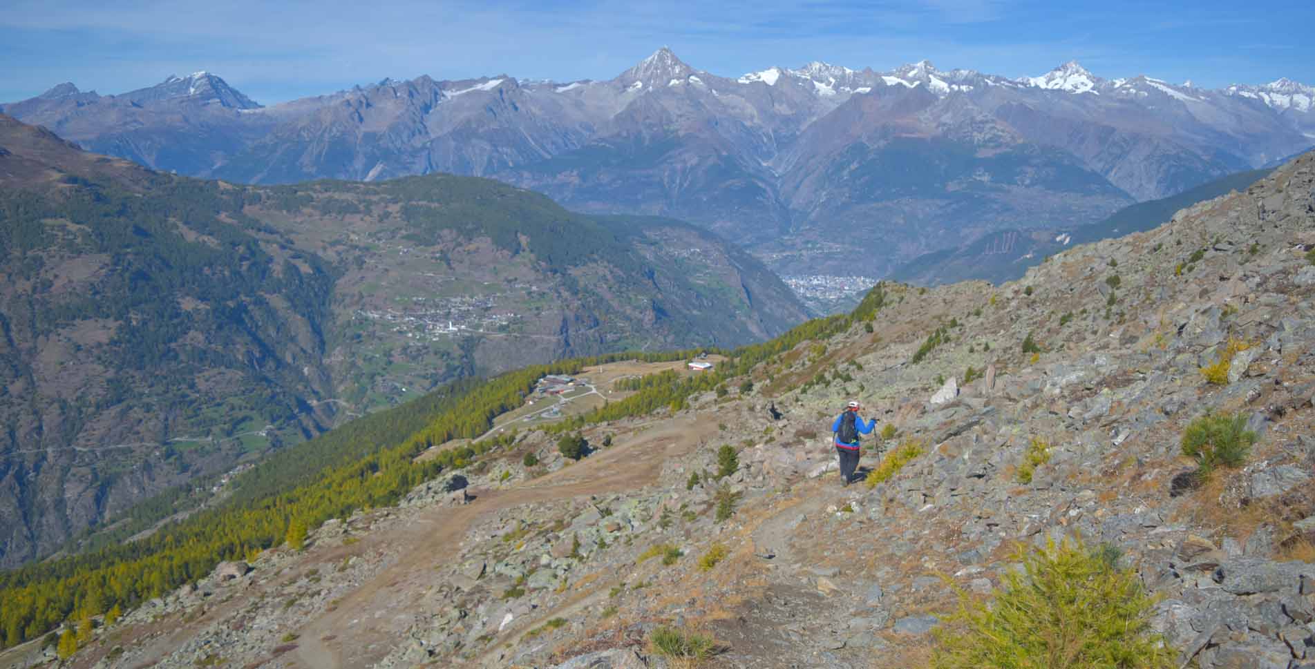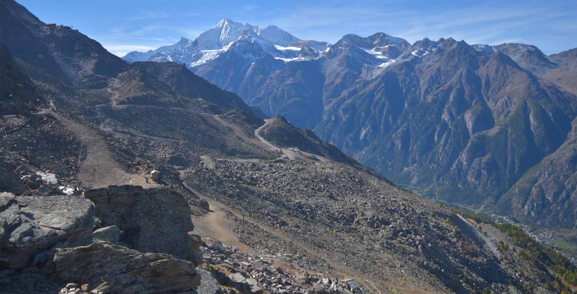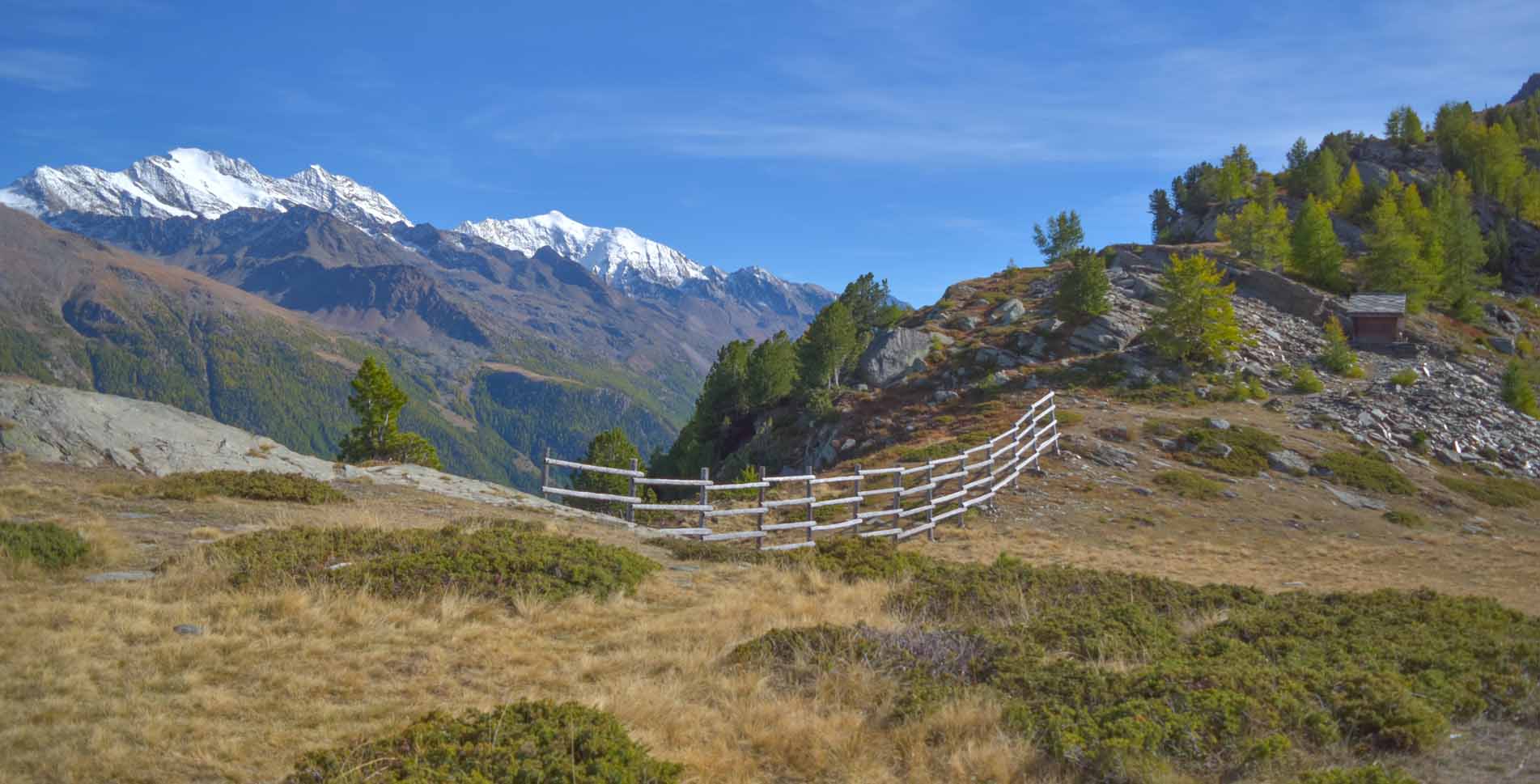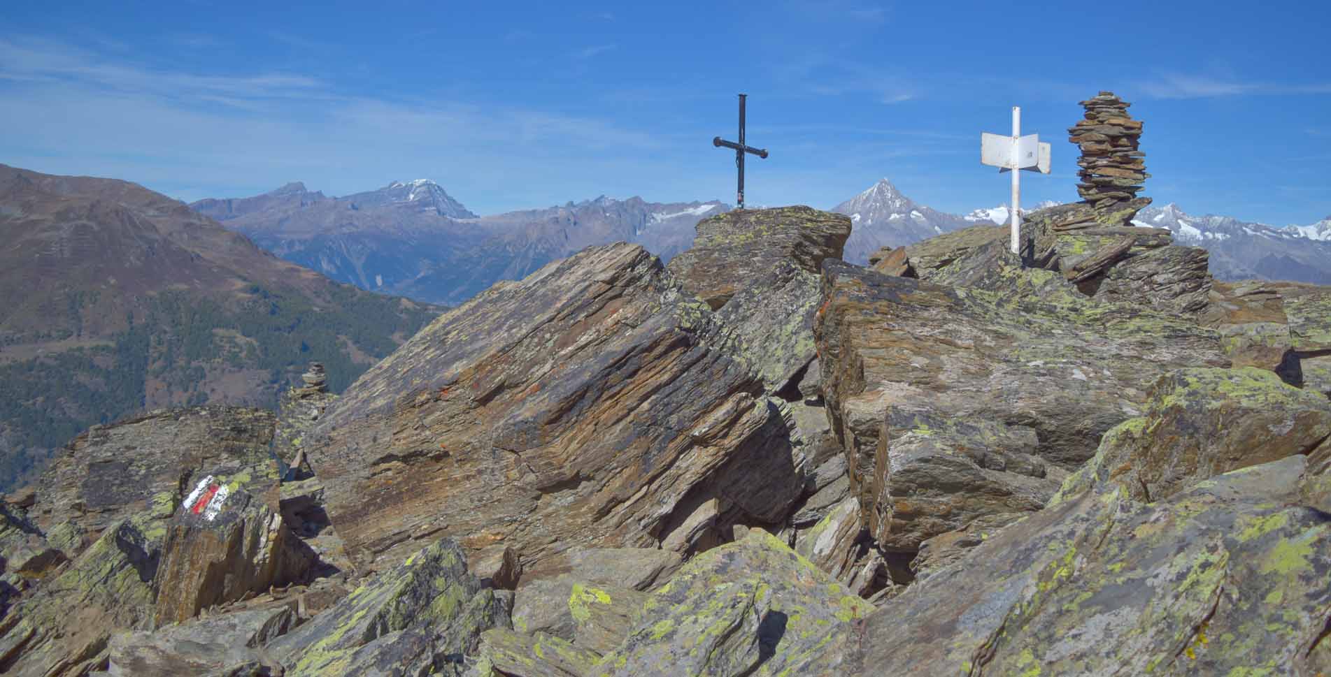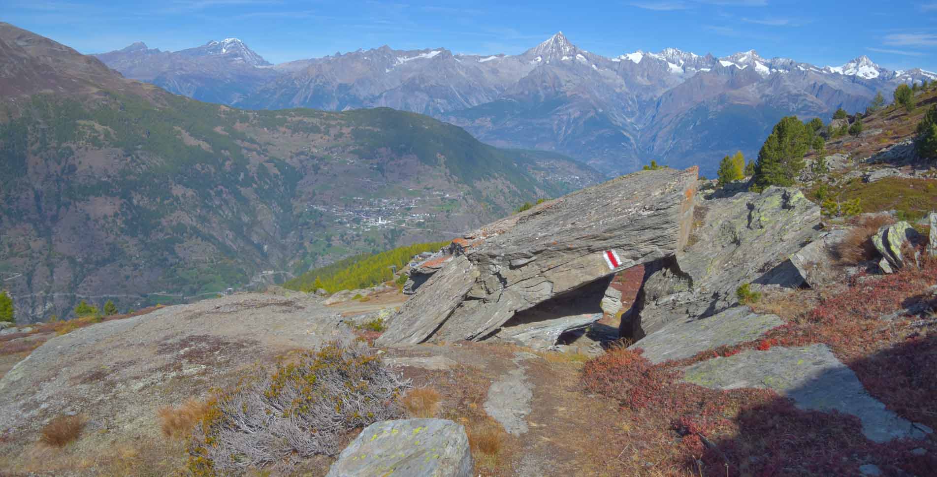 Der 360°-Rundblick vom 2669 Meter hohen Wannihorn ist schlicht atemberaubend! Auf der einen Seite das Saastal, auf der anderen das Mattertal. Dann das Vispertal mit Visp im Rhonetal, in der Ferne ist sogar der Aletschgletscher auszumachen. Gekrönt wird das fantastische Panorama von den majestätischen Bergriesen wie dem Weissmies, Lagginhorn und Fletschhorn gen Saastal und gen Mattertal ist das Weisshorn und Bishorn zu sehen. Sogar der Gipfel vom Dom ist auszumachen.