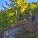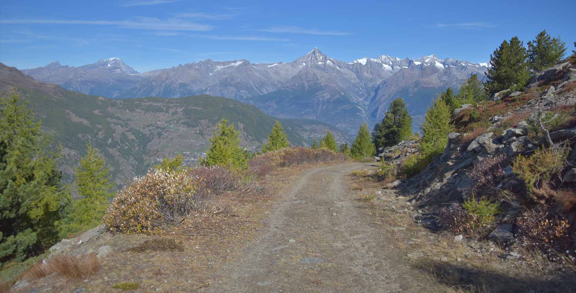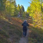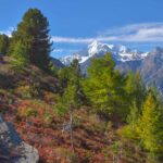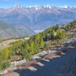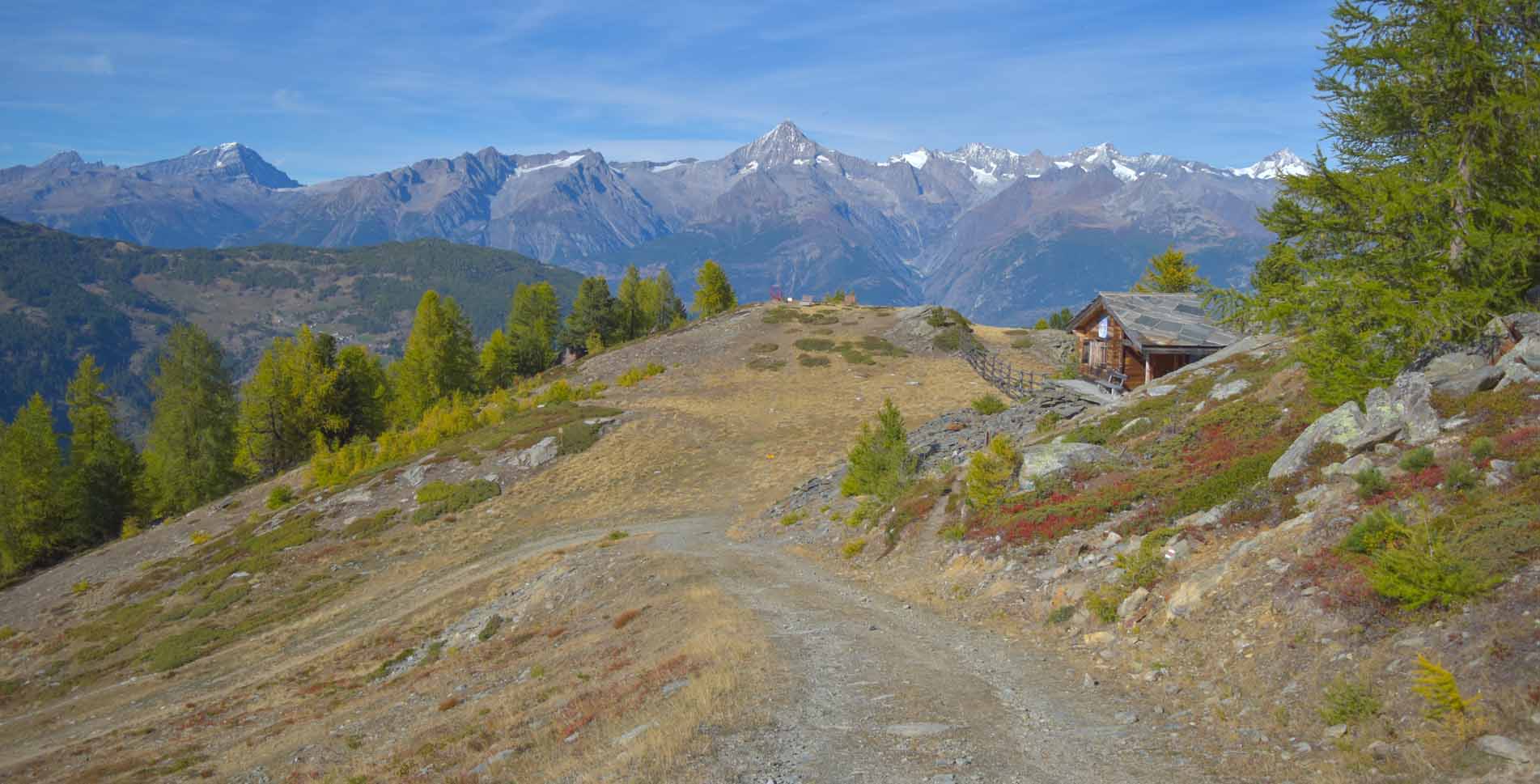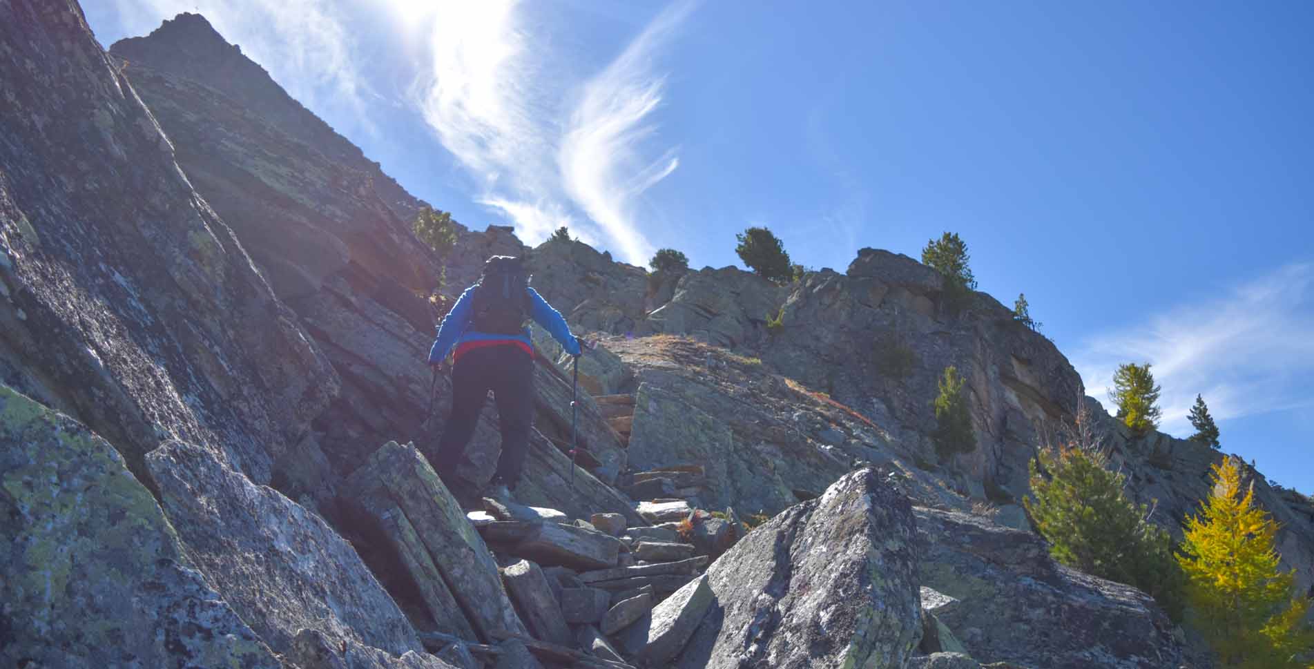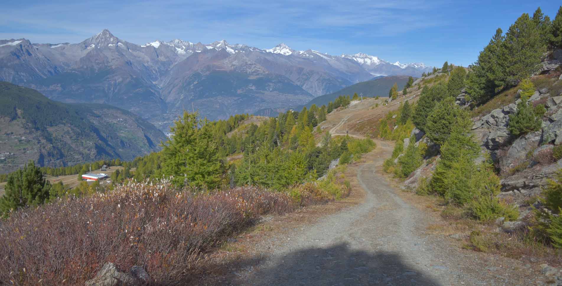 Von der Hannigalp folgt man dem Wegweiser in Richtung Chleinu Furgge und dann in Richtung Wannihoru. Kurz darauf beim nächsten Wegweiser, Punkt 2140m, folgt man nicht dem Gratweg Wannihoru, sondern dem Weg in Richtung Chuchiwang. Der Bergweg führt am Hang entlang und durch einen wunderschönen Lärchenwald bergauf. Vielleicht entdeckt man Eichhörnchen, Rotwild oder Steinwild. Nach rund 20 Minuten, Punkt 2268, erreicht man bereits einen schönen Aussichtspunkt mit Sitzbank. Weiter der Route in Richtung Chuchiwang folgend, wandert man stetig bergauf. Mit zunehmender Höhe lichtet sich der Wald. Beim Punkt 2348 ist man oberhalb der Waldgrenze angekommen. Hier biegt nach rechts auf den breiten Weg ein. Diesem folgt man wenige Minuten bis man nach links auf den bergaufführenden Wanderweg einbiegt.