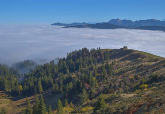 Nur wenige Gehminuten hinab vom Euschelspass ist man bei der Ritzli-Alp (+41 26 929 81 24) angekommen, wo man auch übernachten kann. Gerne darf man auch Alpkäse kaufen. Nun folgt in Kehren der Abstieg via Obere Dorfallmet hinunter ins malerische Jaun, das einzige deutschsprachige Dorf des Bezirks Gruyères.