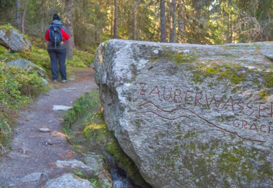 Weiter geht es auf dem Winterwanderweg durch den Weiler Zmutt, überquert den Zmuttbach, wo in der Tiefe, je nach Verlauf der winterlichen Kälte, mächtige Eiszapfengebilde und Eiswände zu sehen sind. Wer Glück hat, kann ein paar Eiskletterer entdecken. Der breite Weg führt gemütlich weiter bis nach Furi. Übernachtsmöglichkeit auf Furi: Silvana Mountain Hotel (+41 27 966 28 00).